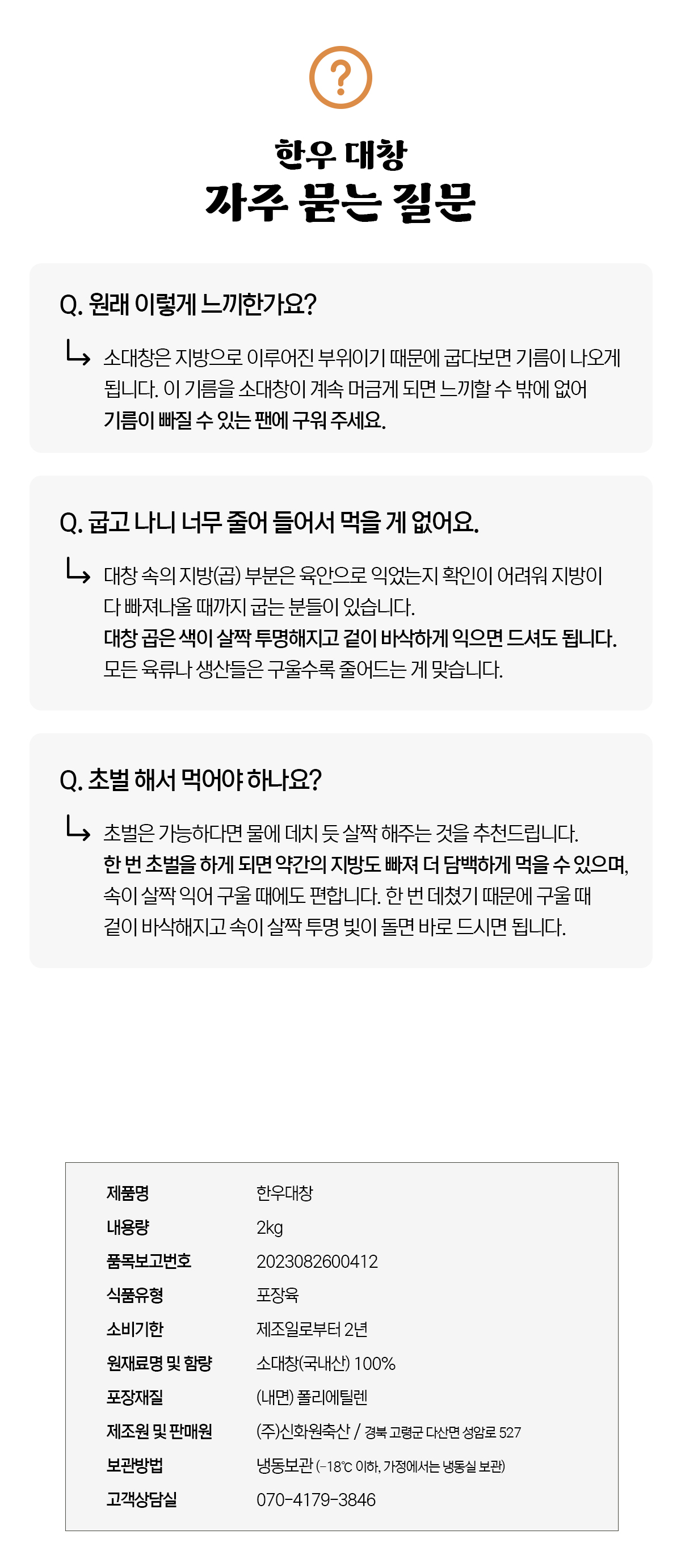 신화원 한우통대창 2kg (낙곱새곱도리탕용)